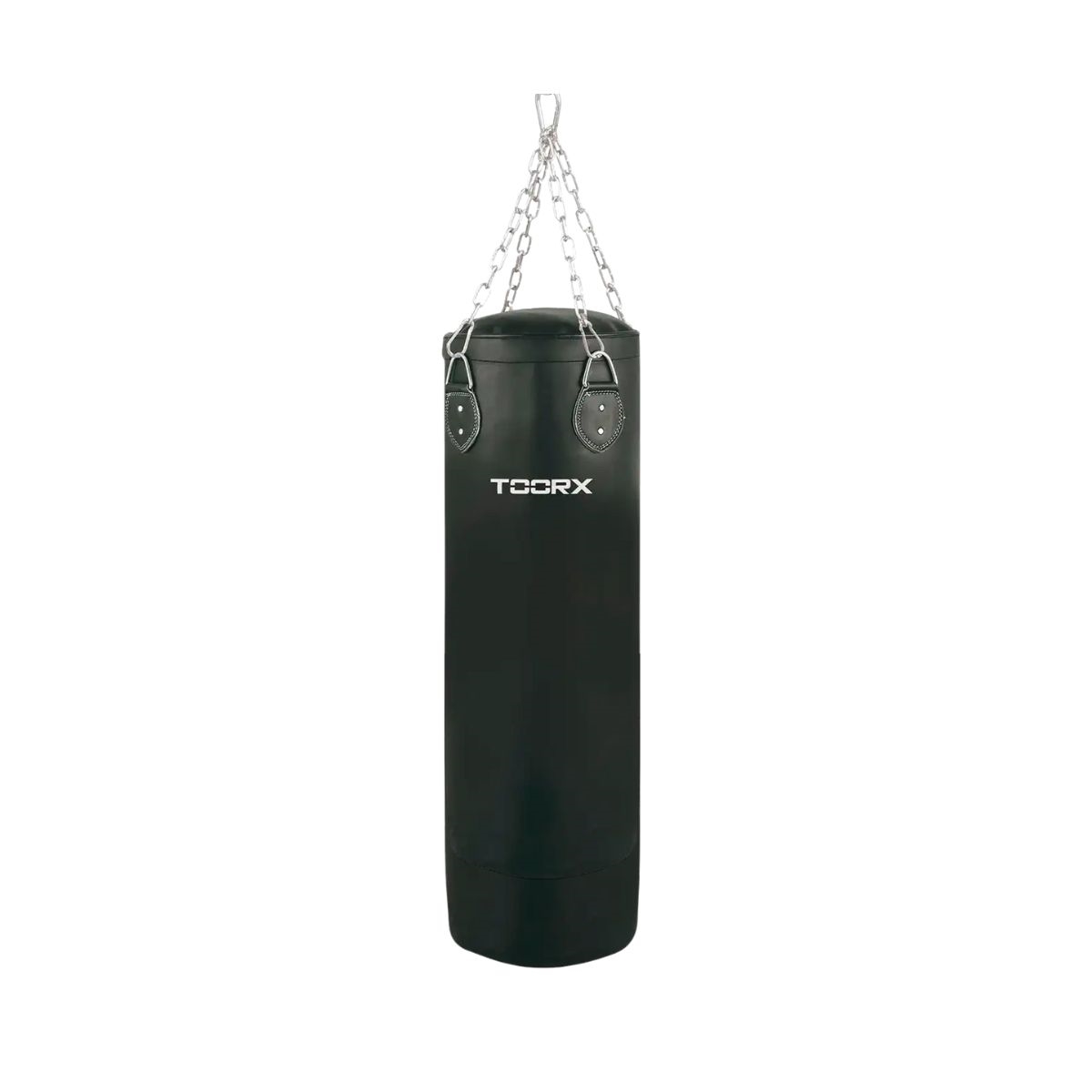Utforsk Toorx Boksesekk på 30 kg, en allsidig boksesekk skapt for å tåle krevende treningsøkter. Laget i svart eco-lær med fyll av revet bomull og sand, leverer denne boksesekken enestående holdbarhet og støtdemping. Med en høyde på 100 cm og en diameter på 33 cm er denne modellen perfekt for både nybegynnere og erfarne kampsportutøvere som ønsker en balansert løsning for hjemme- eller treningsstudio-trening. Leveres med fire kjeder og dreiekrok for sikker og enkel montering.