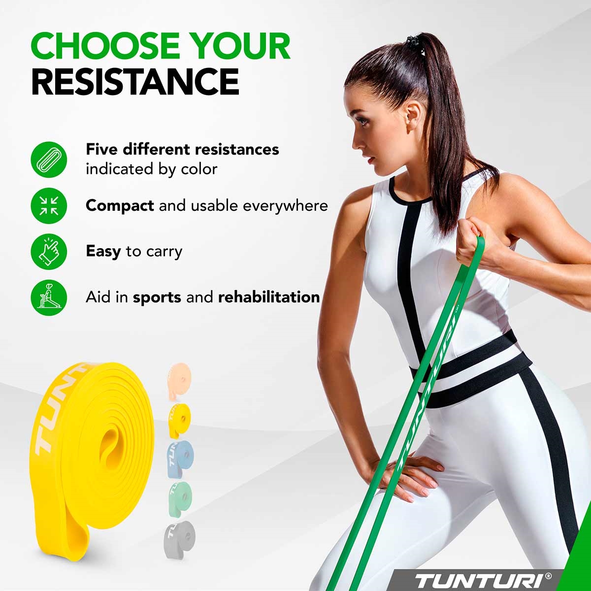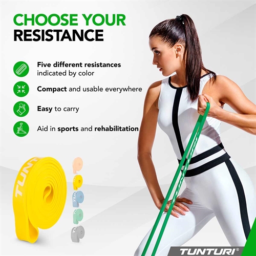 Fest dette motstandsbåndet til en vektstang under knebøy eller vikle det rundt bena eller armene for å legge til en ekstra dimensjon til treningen. Jo mer båndet strekker seg, jo mer motstand opplever du, noe som gjør øvelsene dine mer intense og effektive.